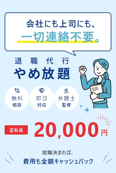 再就職が決定した場合は退職代行費用を全額キャッシュバックいたしますので、お金の心配も最小限で次の一歩を踏み出せます。